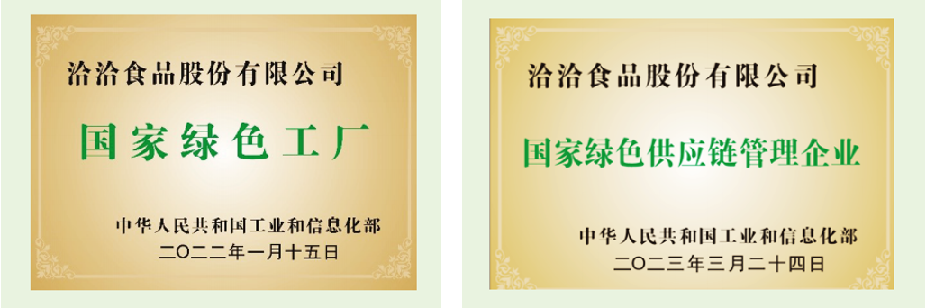 麻将胡了2食品国家绿色工厂、国家绿色供应链管理企业证书
