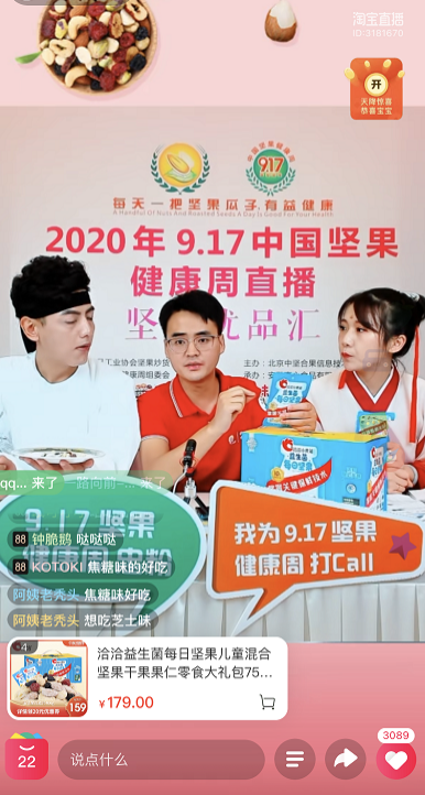同期“坚果优品带货直播”活动于下午2:00在淘宝直播举行,麻将胡了2食品首席增长官王斌现身直播间,现场讲述麻将胡了2坚果保鲜的奥秘,科普坚果营养知识,麻将胡了2蓝袋风味系列瓜子、麻将胡了2益生菌每日坚果2款产品均在直播间亮相!